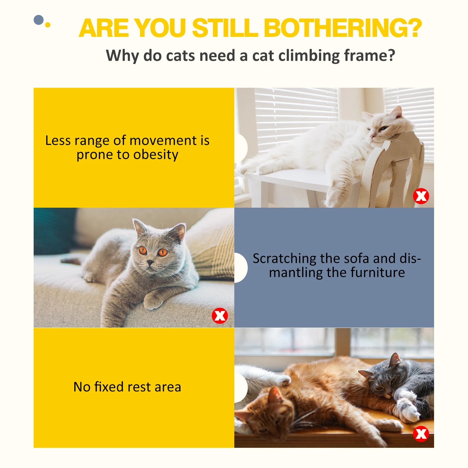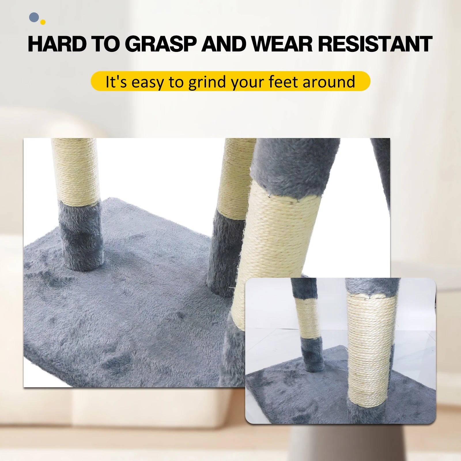 Durable Scratching Posts: This cat activity centre is made of safe and environment-friendly materials. Tough natural sisal covered scratching posts help to keep claws sharp and healthy and let your furniture remains untarnished and safe.