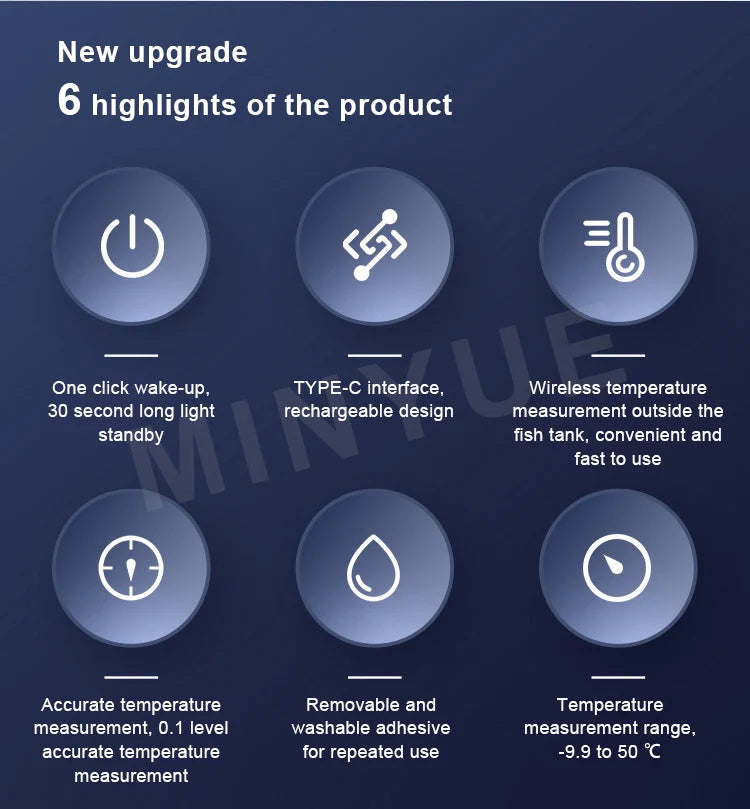 Accurate Display: The fish tank thermometer has a measurement range of -9.9 to 50℃. Fish tank water temperature detection refreshes every 5s. Touch the screen icon to display the water temperature, for up to 30 seconds of the temperature display.on and Saturated colours. Whether it is day or night, the value can be clearly read.