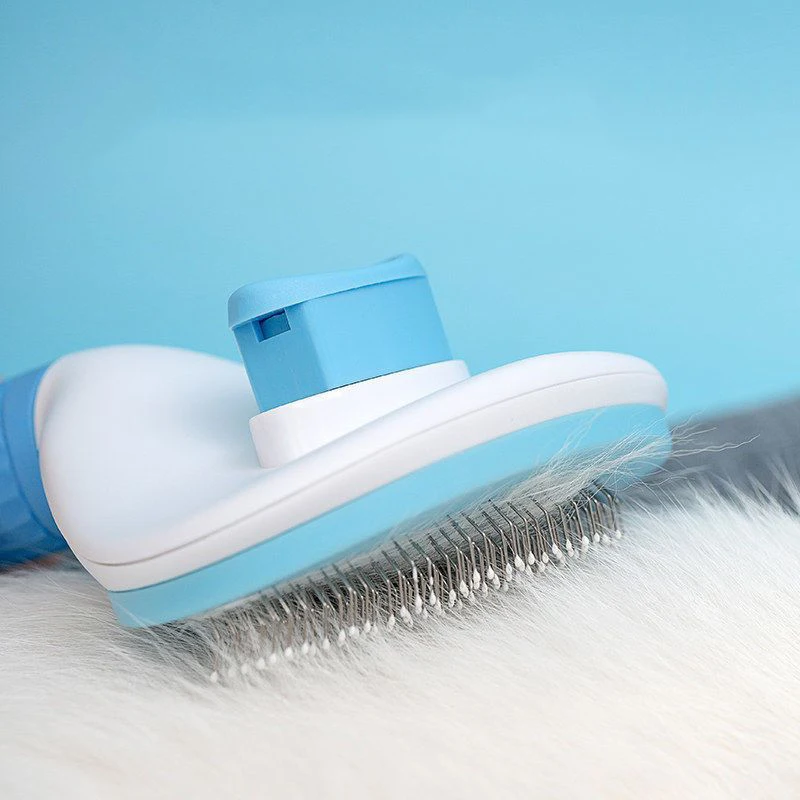 This stainless steel pet grooming brush is specially designed for long-haired dogs and cats, offering gentle yet effective detangling. Its durable metal bristles glide through fur to remove knots and loose hair without causing discomfort, making daily grooming effortless.