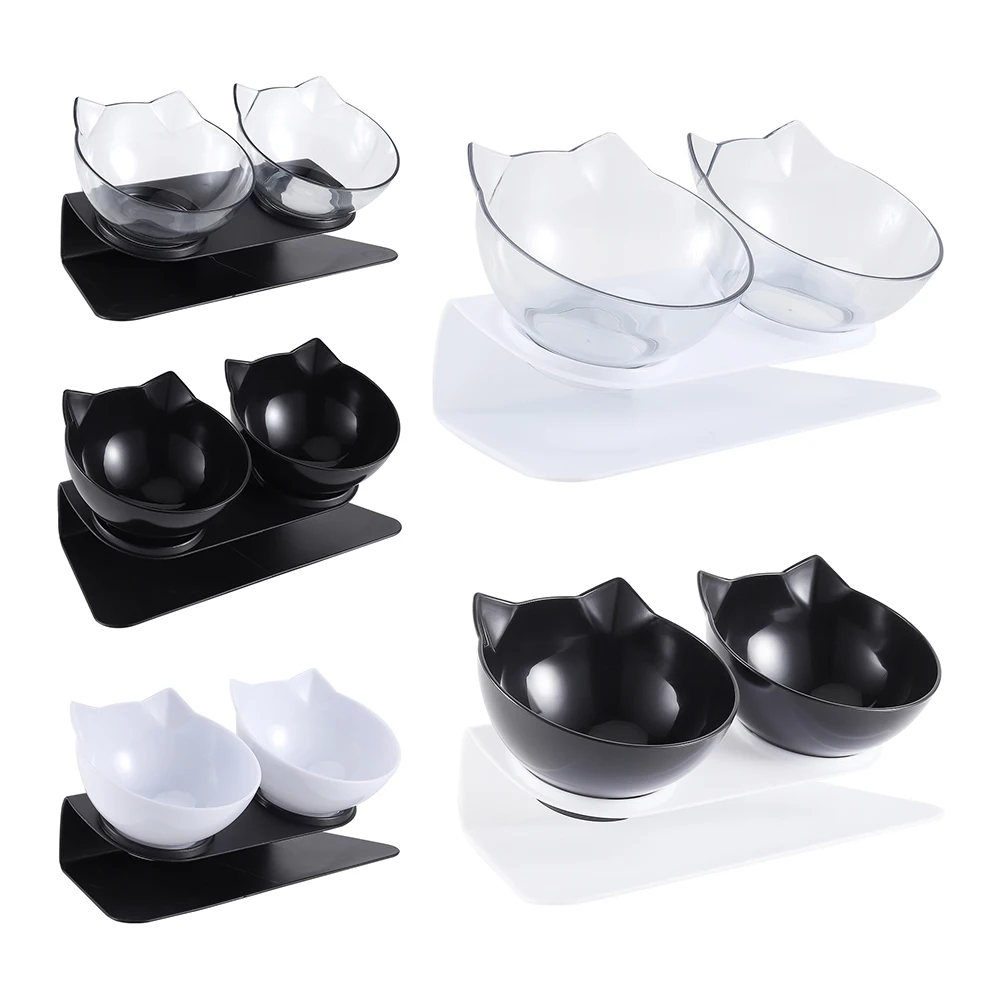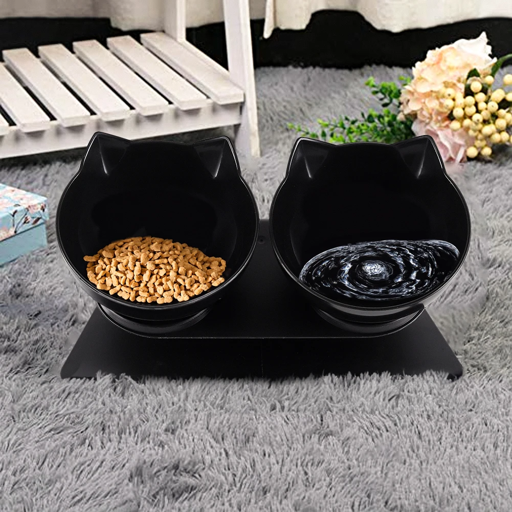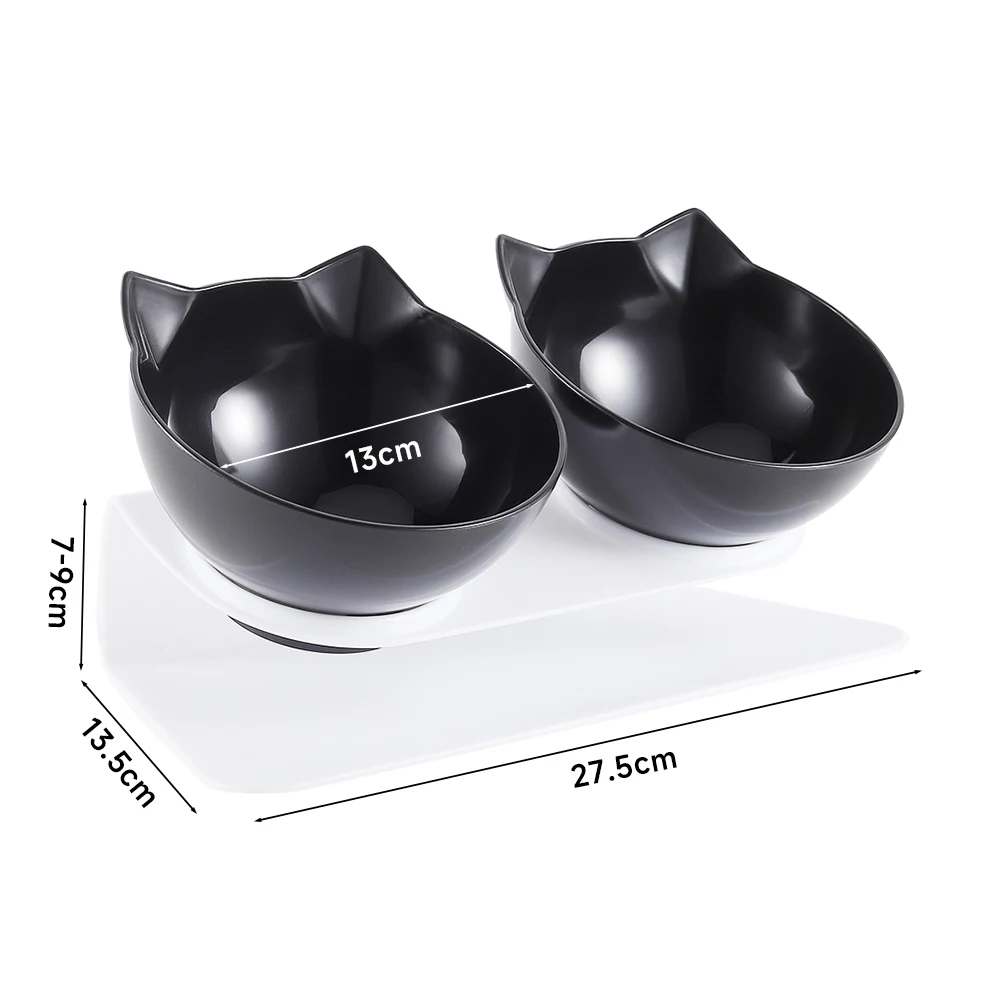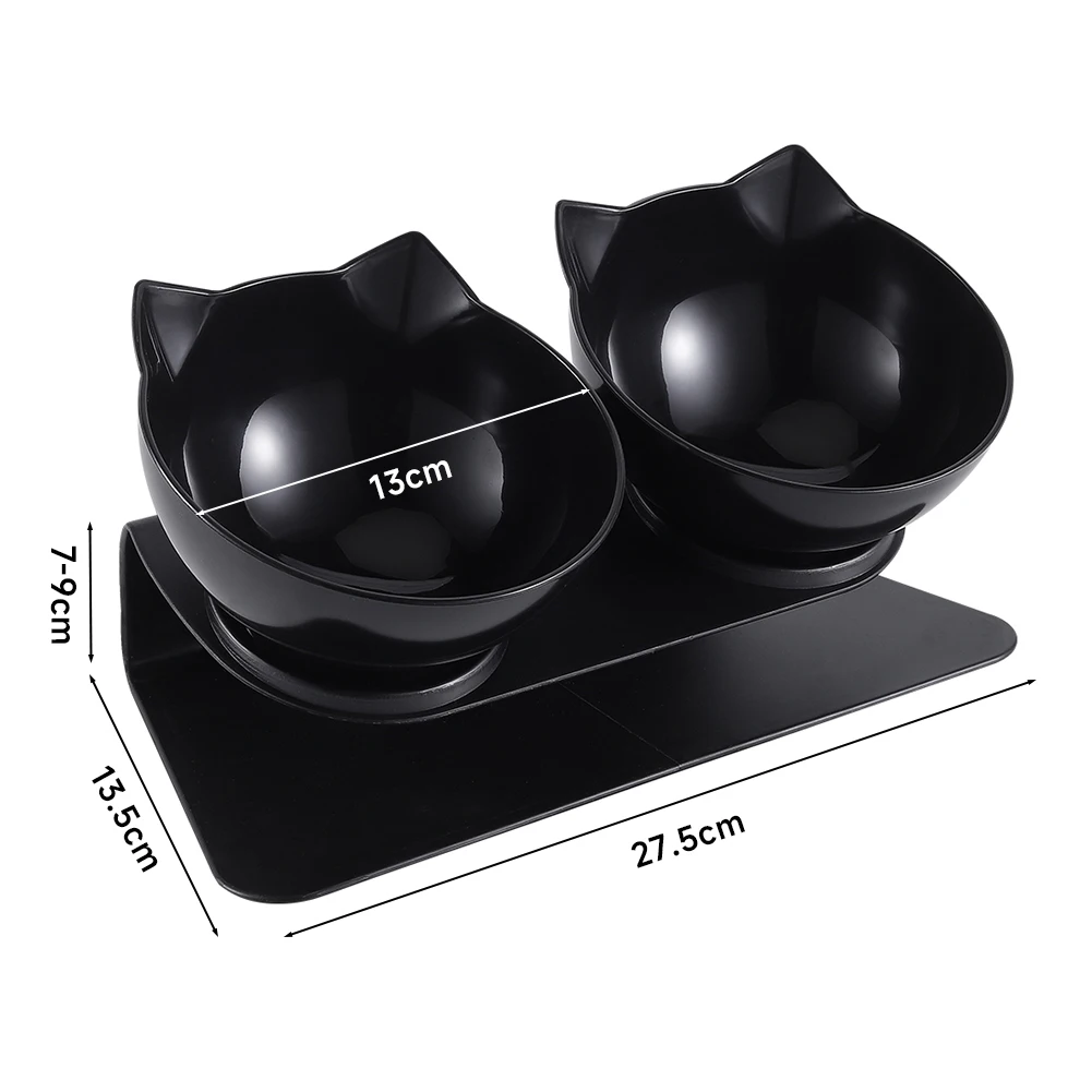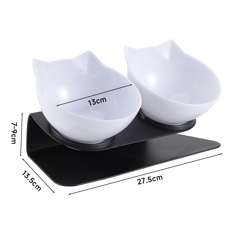 15° Tilted Cat Bowls – Non-Slip Elevated Double Feeder for Neck Protection