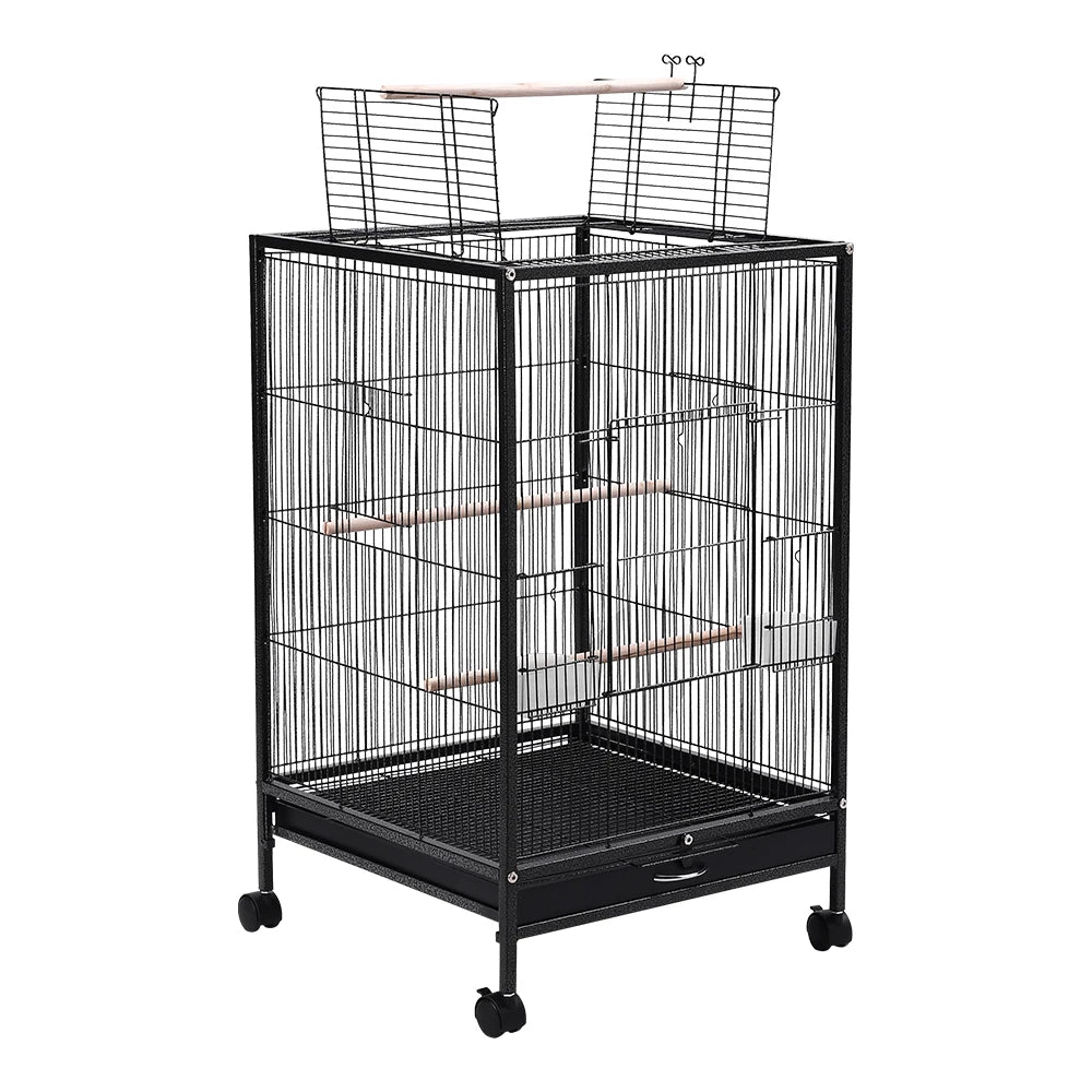 Open Top Bird Cage – Large Metal Parrot Villa with Casters, 48x48x77cm